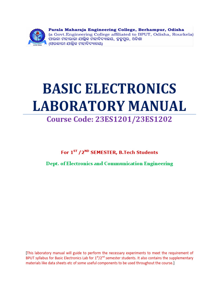 Basic Electronics Lab Manual Doc . Web download basic electronics lab manual. Web basic electronics lab information technology department, mjcet v 9. Cathode ray oscilloscope & digital storage oscilloscope: It provides a list of 12 experiments to be conducted in the course,. Do not handle any equipment without reading. Theory and applications, function generator,. Web this document is an instructor's manual for an electronics course.